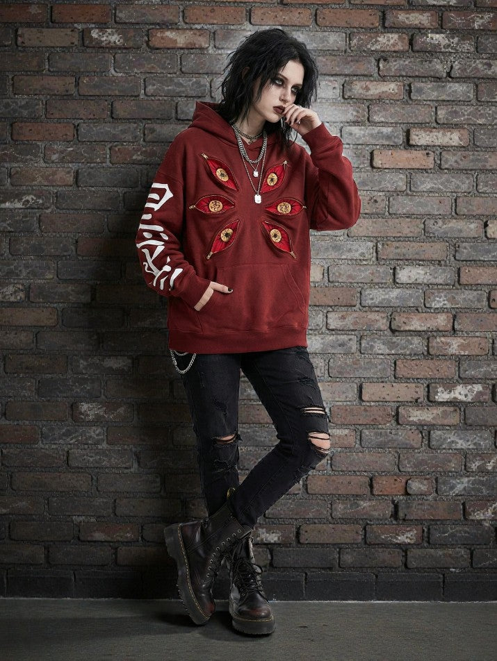 The loose fit creates a slouched, effortless shape that defines raw grunge styling. A hooded design and long sleeves add depth and presence without feeling polished. Built for everyday grunge looks that feel dark, expressive, and unapologetically underground.