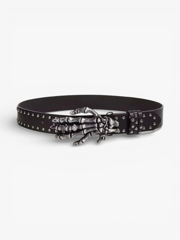This belt delivers raw grunge energy with bold rivet detailing and a striking skull buckle. The unisex design pairs effortlessly with jeans, cargos, or layered streetwear looks. Crafted with a structured PU leather finish, it adds attitude and edge to everyday outfits.