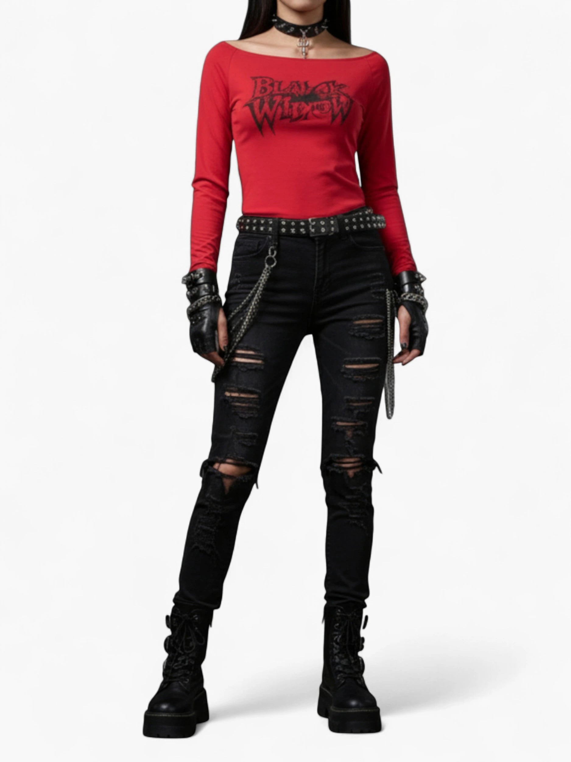 This Black Widow crop top is perfect for anyone into Y2K, grunge, and edgy streetwear looks. The slim fit and stretch fabric give it a clean, flattering shape, while the tribal-style spider graphic makes it stand out instantly.
