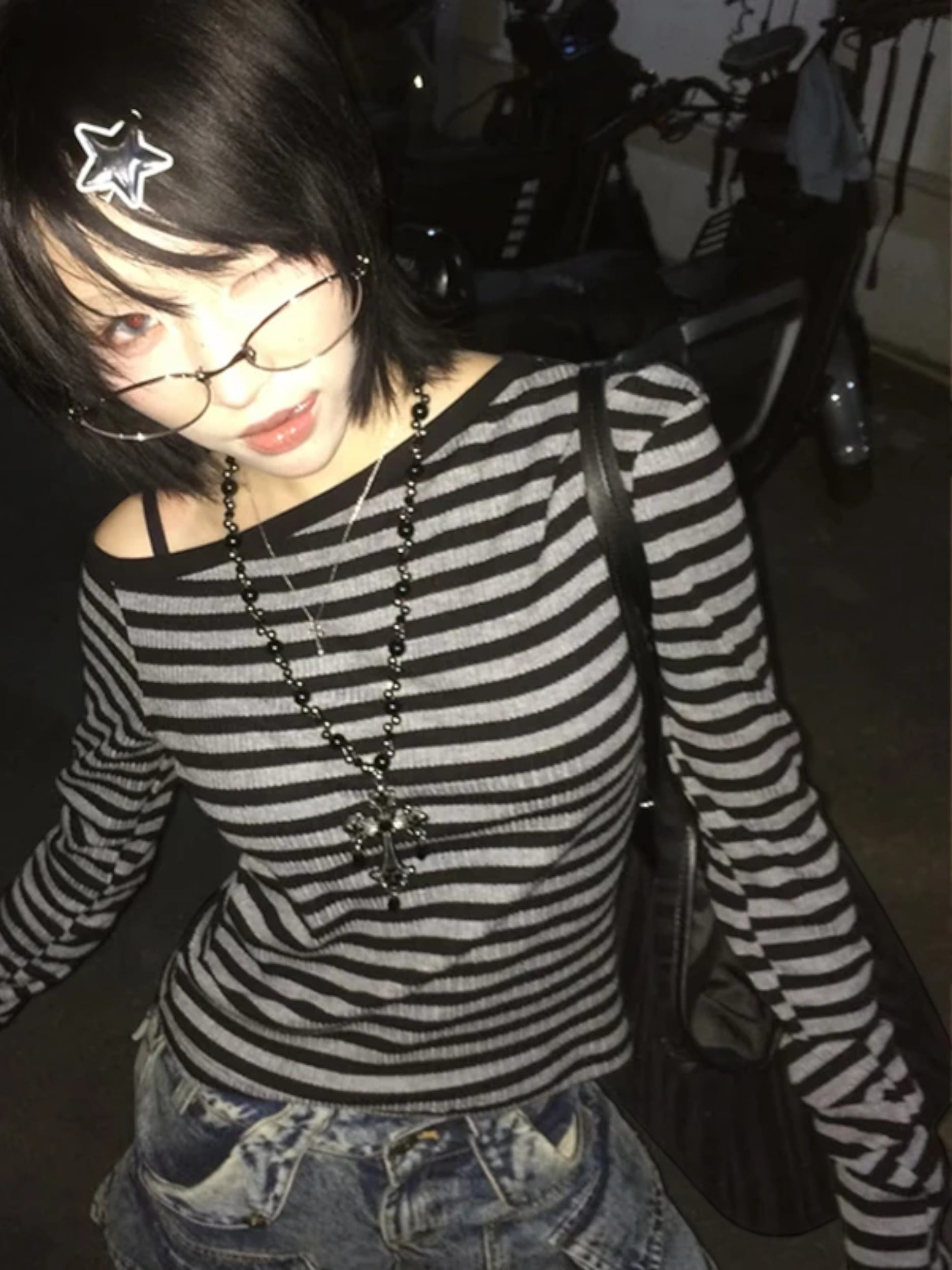 This slim-fit striped top gives an easy Y2K and grunge vibe with its off-shoulder neckline and clean, fitted shape.